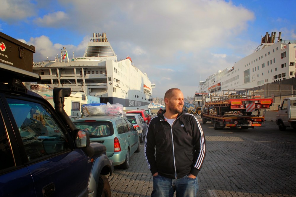 Nach 6 Stunden Fahrt sind wir im Hafen von Genua angekommen. Es ist etwas chaotisch, den richtigen Weg zum Anlegeplatz unserer Fähre zu finden, aber nach einigen Nachfragen stehen wir dann doch in der richtigen Reihe.