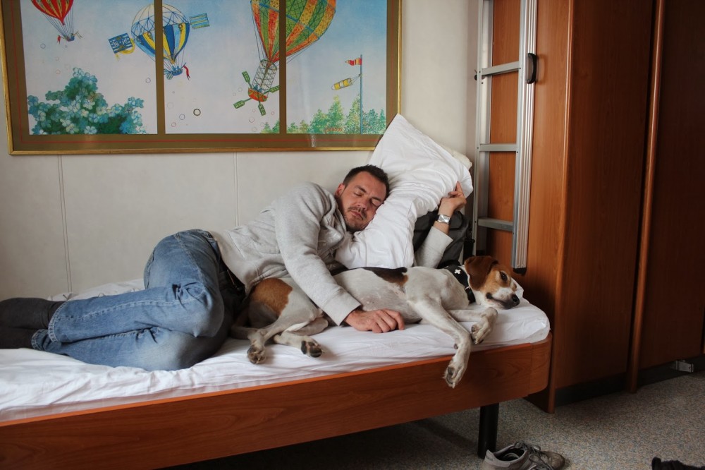 Die Einschiffung verläuft erstaunlich schnell, ruck zuck sind wir mit Pluto auf unserer Kabine. Eins muss man echt sagen. Pluto war trotz Lärm, Enge und Hektik in der Garage der Fähre absolut brav. Die erste Hürde und Aufregung war also erfolgreich gemeistert.