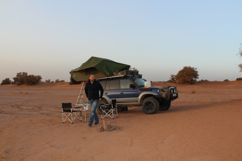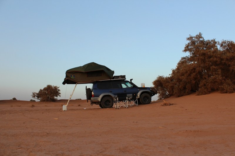 Leider zwingt uns am Nachmittag ein fieser Sandsturm zum vorzeitigen Stopp. Wir beschließen, die Nacht erst mal hier zu bleiben und versuchen, hinter einer kleinen Düne mit Büschen etwas Schutz vor dem Sandsturm zu finden.