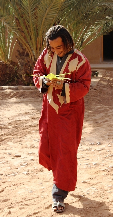 Mit einem Abschiedsgeschenk von Said (ein aus Palmblättern schnell geflochtenes Kamel) machen wir uns daraufhin wieder auf den Weg und fahren auf sandigen Pisten entlang der algerischen Grenze Richtung Dünengebiet Erg Chegaga.