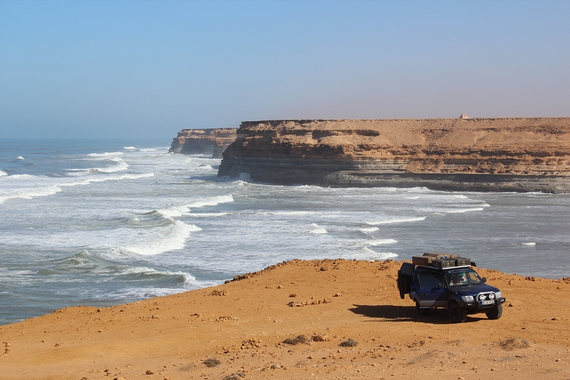 Nach zwei super schönen Tagen fahren wir entlang der Steilküste wieder ein Stück Richtung Norden zurück und erreichen das Draa-Tal.