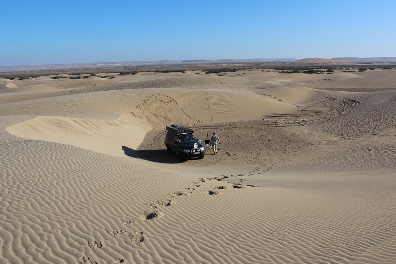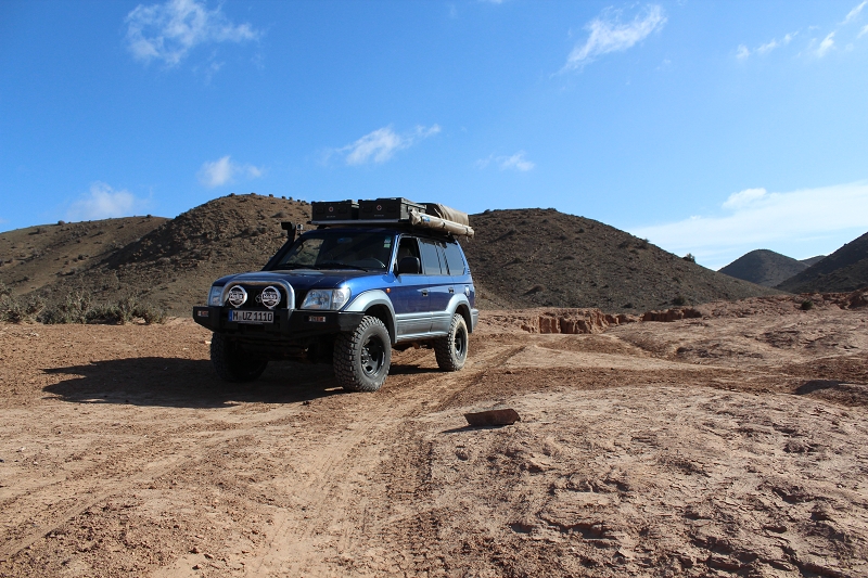 Der Draa bildet im Südwesten des Landes etwa 390 Kilometer lang die − immer noch umstrittene − Grenze zu Algerien und ist − nach seltenen aber manchmal heftigen Regenfällen − der längste Fluss des Landes. Aber meistens liegt dieser trocken und wir können hier so richtig schön mit MUZ offroad fahren. Auch finden wir hier ein lauschiges Plätzchen zum Campen.