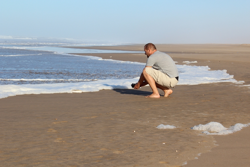 Wir genießen bei Sonne und 25 Grad unseren Kaffee und die mitgebrachten Weihnachtsplätzchen. Danach erklimmen wir so manche Dünen und watscheln im kühlen Nass.