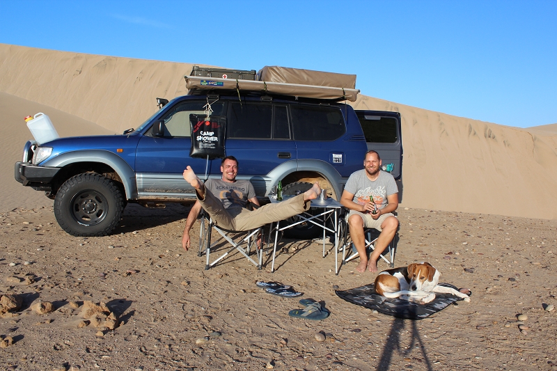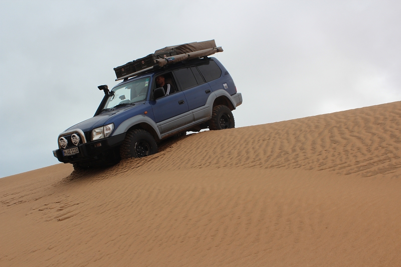 Heute – am 1. Weihnachtsfeiertag – fahren wir weiter Richtung Süden und erreichen am Nachmittag ein fantastisches Sanddünengebiet unmittelbar an der Küste. Jetzt müssen wir erst mal ein paar von diesen Sandhügeln erklimmen um den perfekten Nachtplatz zu erreichen. Allerdings klappt das nicht immer so einfach – aber mit noch weniger Luft und der Untersetzung unseres MUZ ist es dann natürlich kein Problem.