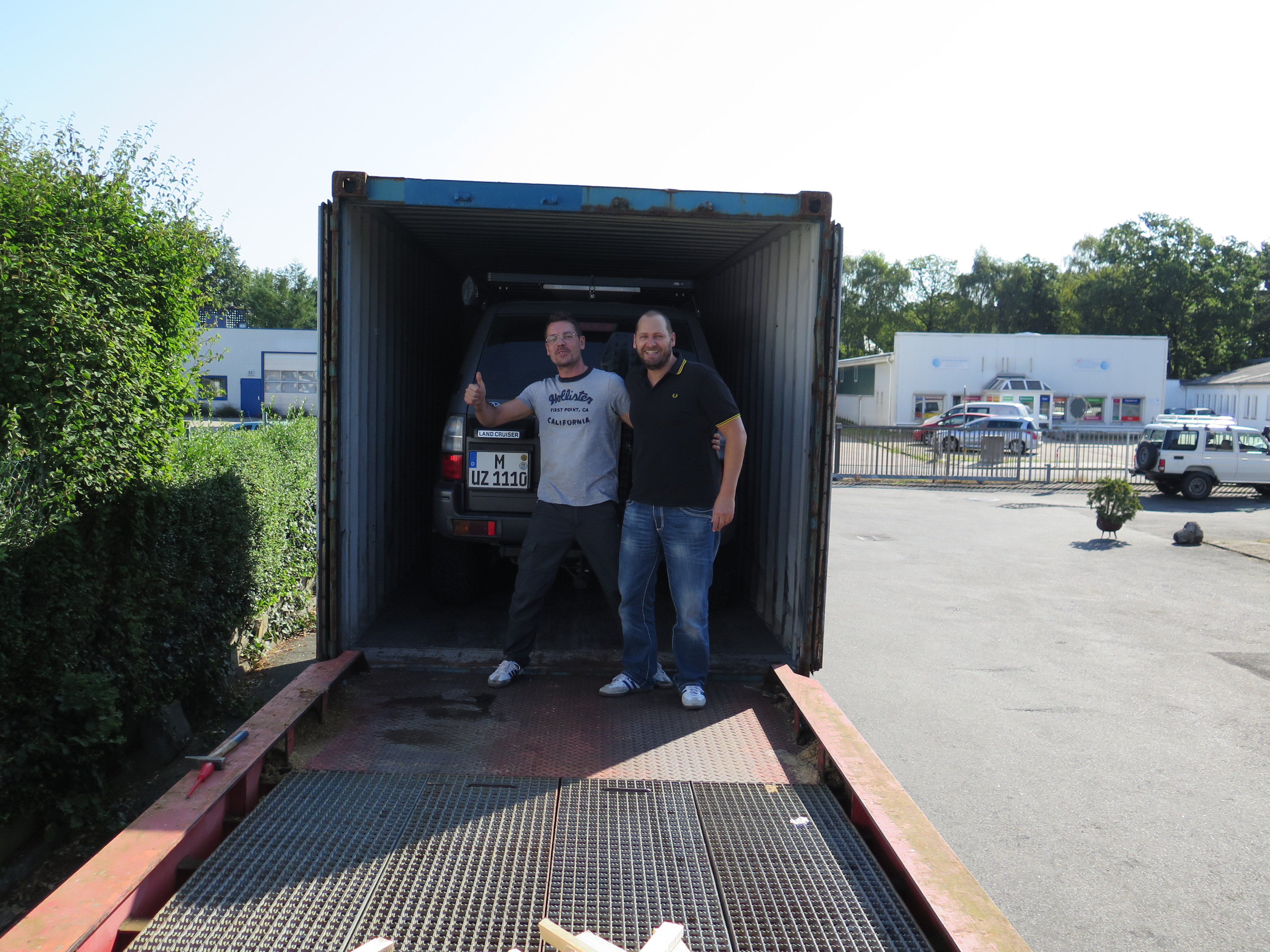 Dort erwartet uns schon ein geöffneter Container, mit dem MUZ seine Reise nach Namibia antreten wird.