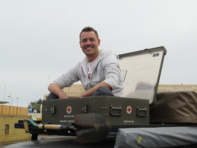 Das Tor zur Lagerhalle geht auf und wir begrüßen freudig unseren MUZ. Es ist für uns ein tolles Gefühl, unser eigenes Dachzelt, Kanister und Ersatzreifen, sowie die Box aufs Dach zu montieren und die Taschen ins Auto zu schmeißen. JETZT KANN ES TATSÄCHLICH LOS GEHEN!