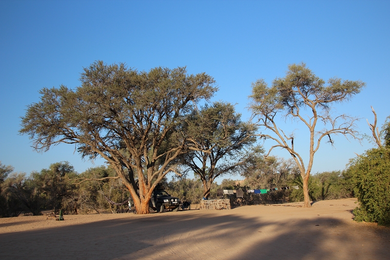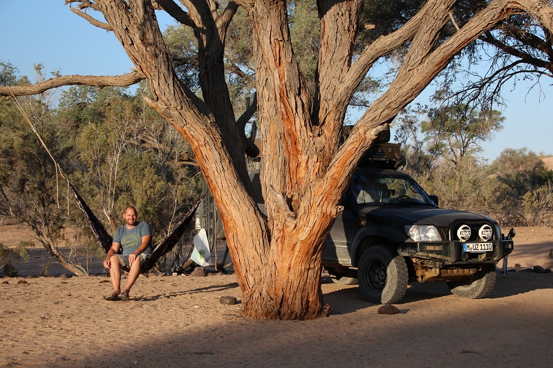 Wir schlagen unser Lager auf der Campsite der Ugab Terrace Lodge auf. Es ist schon deutlich wärmer, dafür pfeift uns nachmittags ein heftiger Wind um die Ohren. Wir können euch sagen, extrem staubige Angelegenheit (Andrea, wir sagen nur…. Samburu…)!