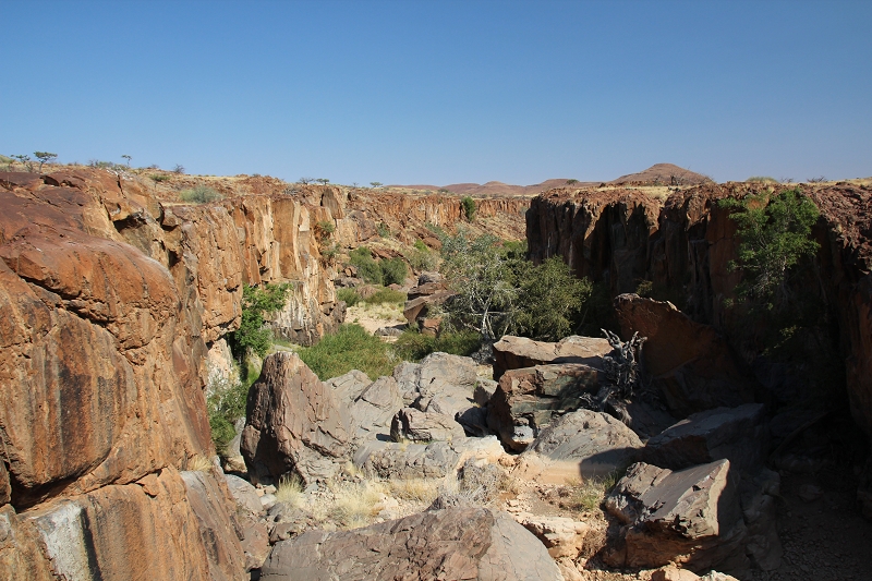 Wir halten es kaum aus und fahren weiter in dem Gebiet Richtung Aub River. An einer speziellen Stelle hat der Fluss einen ordentlichen Canyon in die Landschaft gefräst.