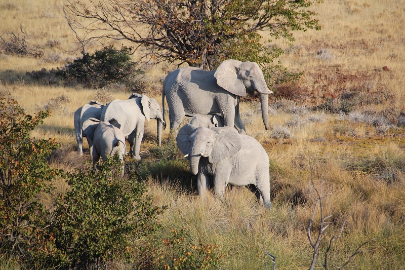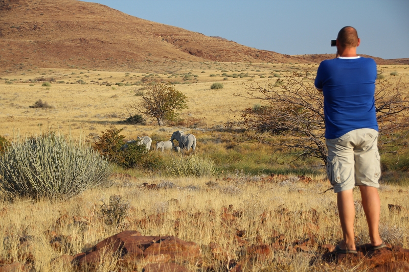 Und kaum gedacht, schon werden wir im Abendlicht endlich mit den ersten Wüstenelefanten belohnt. Wir haben auf unseren Reisen schon so viele Dickhäuter gesehen, aber immer wieder freuen wir uns ganz besonders, wenn wir diese tollen, intelligenten und hoch sozialen Tiere sehen. Und Wüstenelefanten in dieser kargen Umgebung ist nochmal ein neues und ganz tolles Erlebnis für uns.