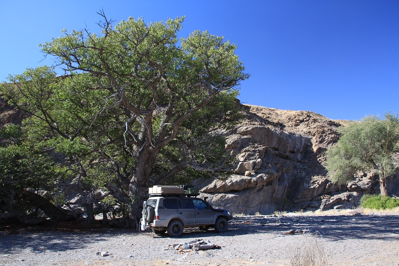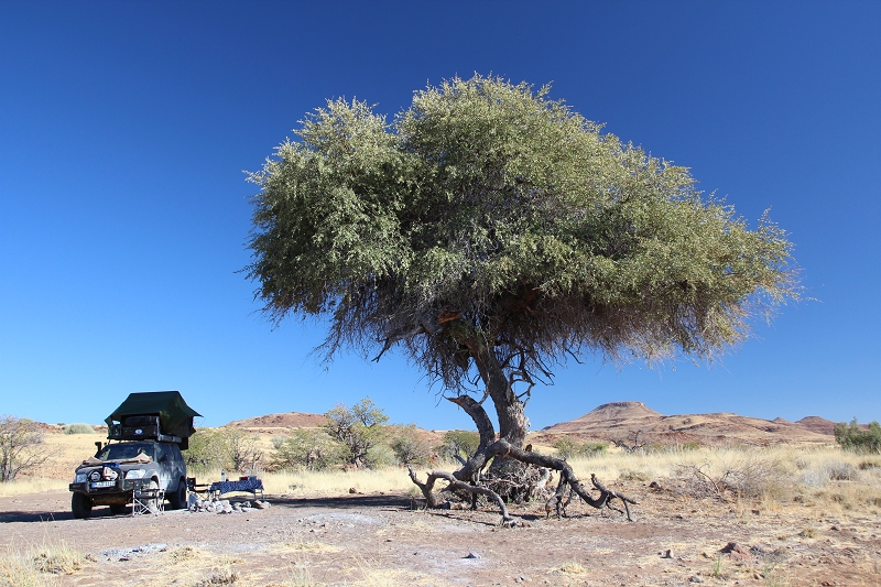 Wir fahren an diesem Tag noch bis zum Stellplatz C7 (S19 23’243“ E013 16’800“). Stellplatz heißt, ein Baum und ein paar Steine, die eine Feuerstelle markieren.