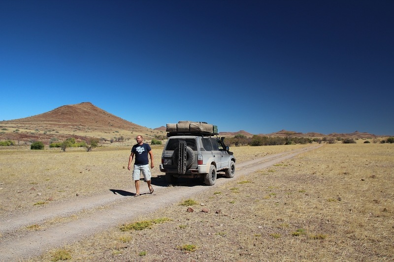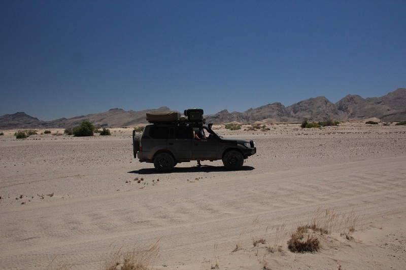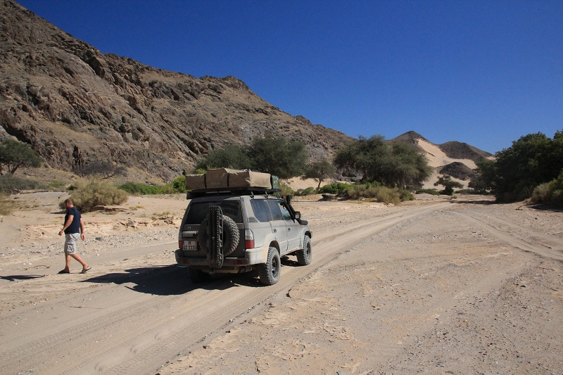 Am nächsten Tag brechen wir gegen 10:00 Uhr auf und wagen uns doch an den Crowthers Trail Richtung Hoanib River.