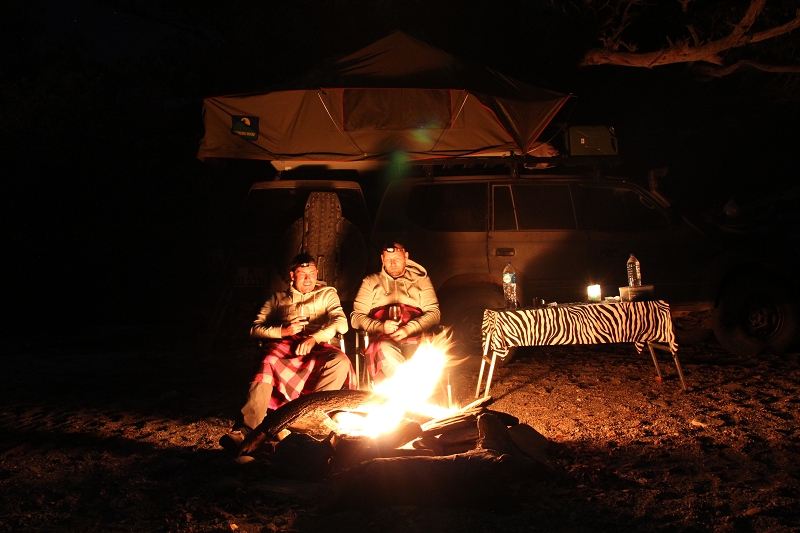 Als wir auf dem Platz C1 (S19 50′ 001“ E 013 47′ 274“) ankommen, wird es schon wieder so kühl, dass wir nach dem Essen die Glut als Fußbodenheizung unterm Tisch gut nutzen können.