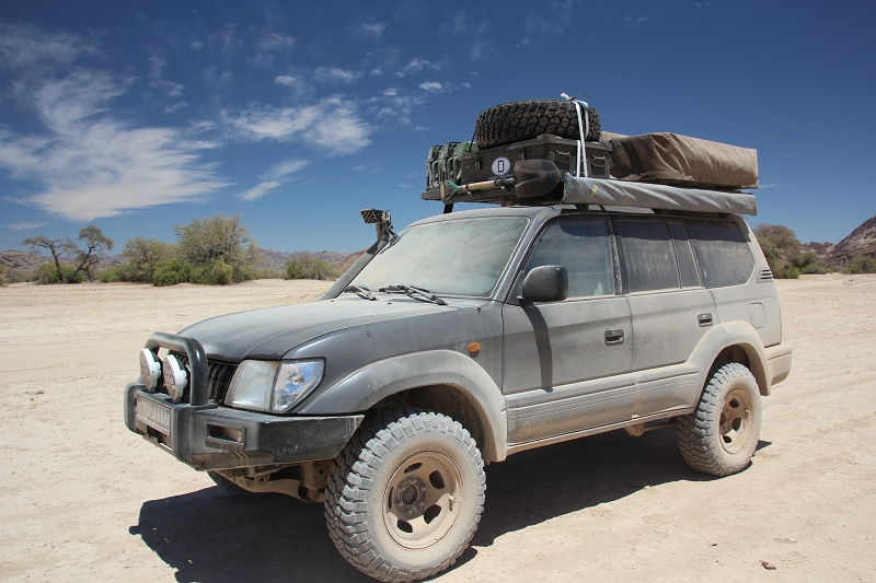 Wir besorgen uns bei der Palmwag Lodge das Permit für 2 Nächte und nutzen die letzte Möglichkeit beim Veterinärkontrollpunkt, um Tank und Kanister auf dem Dach aufzufüllen.