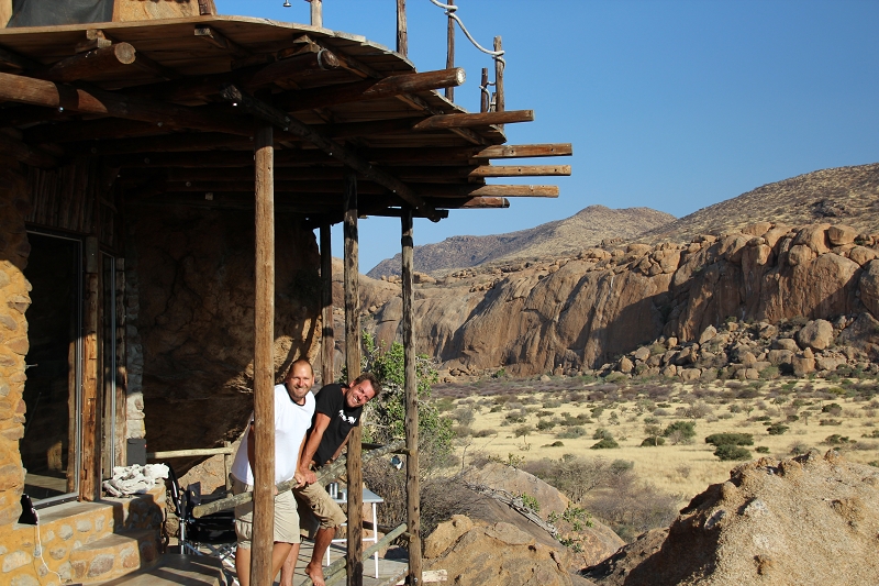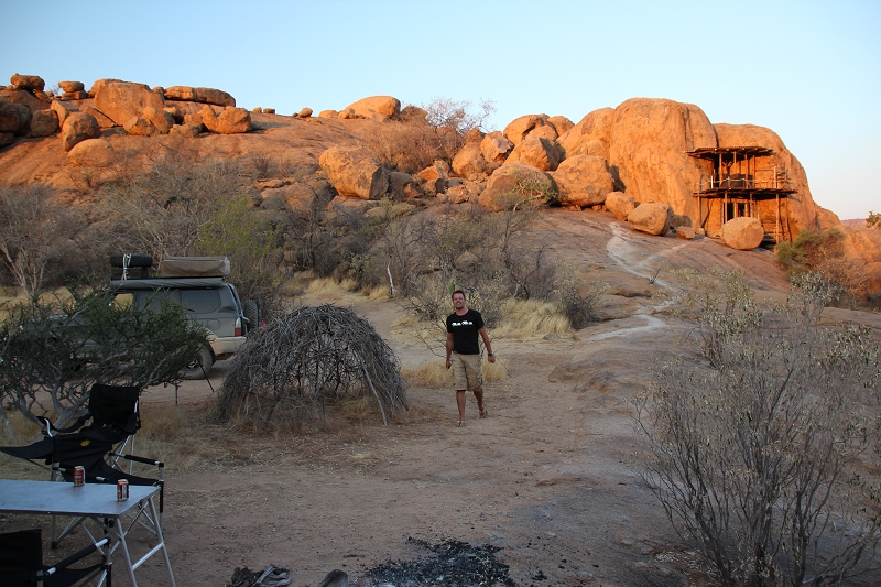 Hier hat sich ein „Aussteiger“ eine Höhle auf dem riesigen Farmgelände (die meisten Farmgelände in Namibia haben eine Größe vergleichbar mit München) als Schlafplatz ausgebaut. Wenn er nicht da ist, vermietet die Farm diesen als Stellplatz für Camper.