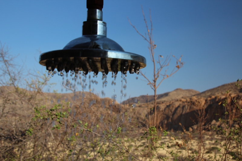 Wir entscheiden uns für die „Bulls Party“ und richten uns erstmal auf der Ameib Ranch ein. Das „Einrichten“ ist ja momentan immer eine Sache für sich. Da wir ja die Heckklappe nicht von außen öffnen können, heißt es: Tasche raus, Boxen und Kanister raus, reinkrabbeln in die verstaubte Karre und mit viel Gefühl versuchen, blind den öligen Hebel so zu schieben, dass die Heckklappe zu öffnen ist. Dann wieder alles rein in den MUZ und sich gut überlegen, ob man die Heckklappe heute nochmal schließen muss oder nicht.