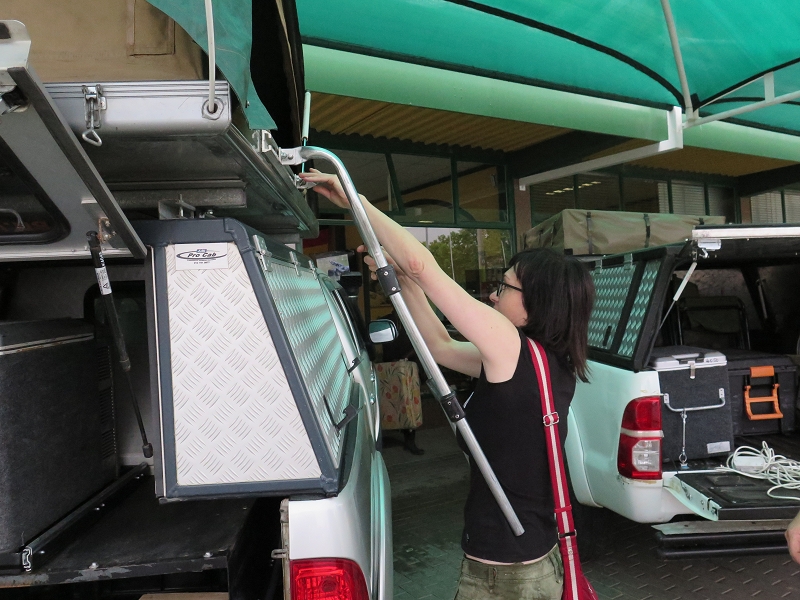 Bei Savanna Car Rent angekommen ist schon die Einweisung durch Wenzel, ein Mitarbeiter des Autovermieters, das erste Highlight. Wir vermuten, das Ganze dauert ein bisschen länger als normalerweise, aber schließlich ist es Andrea´s erste eigene Erfahrung mit einem Offroad-Fahrzeug.