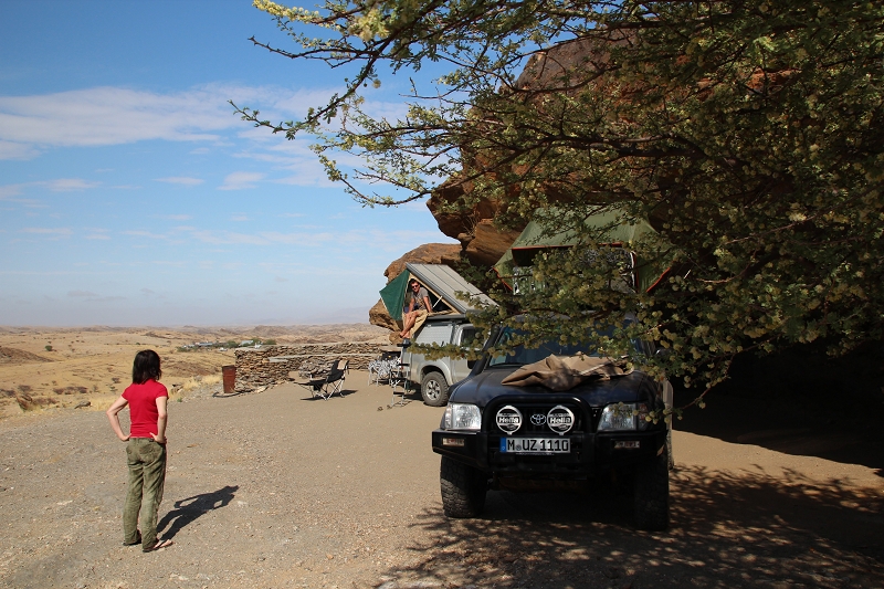 kIMG_2052 kIMG_2068 kIMG_2075 kIMG_2078 kIMG_2081Andrea ist absolut begeistert von der ersten Nacht im Dachzelt. Wir frühstücken noch gemütlich auf der Campsite von Rooiklip und machen uns dann auf den Weg zu unserem nächsten Ziel. Grundsätzlich wollen wir uns in Richtung Sesriem bewegen, da wir mit Andrea natürlich noch die Dünen der Namib, das Sossousvlei und Dead Vlei besuchen wollen – auch wenn wir wissen, dass dort zur Zeit sicherlich sehr viele andere Touristen unterwegs sein werden und das eigentlich gar nicht unser Ding ist.