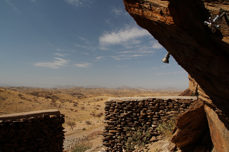Wir erreichen unser erstes Ziel, Rooiklip. Dort werden wir sehr herzlich von der Besitzerin der Farm, Hannelore, empfangen. Zuerst die Formalitäten – wir tragen uns wie immer ins Registration-Book ein und sofort fällt uns der letzte Besucher ins Auge. Es waren Dina und Tom aus Untersendling, die wir auf dem Erongo Plateau Camp getroffen haben und die uns später auf dem Campsite der West Mine eine Nachricht hinterlassen haben. So groß Namibia ist, so groß sind dann auch oft die Zufälle. Dina und Tom, wir nehmen auch die Campsite Nummer 1.
