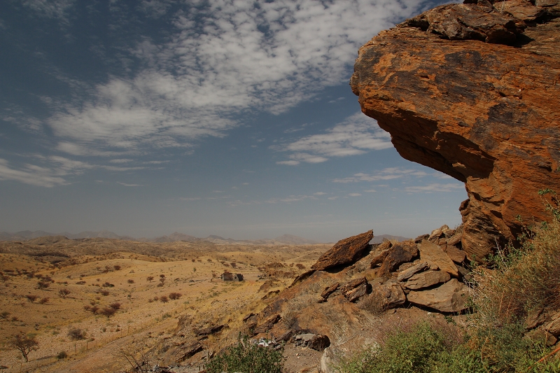 Unsere erste Etappe führt uns von Windhoek in südwestlicher Richtung über den Gamsbergpass. Andrea schlägt sich tapfer. Zur Sicherheit und Beruhigung fährt Markus in ihrem Auto mit. Bis auf ein paar Scheibenwischer-Einsätze statt Blinker (schließlich ist das ja beim Rechtslenker umgekehrt) klappt alles wunderbar. Mit dem dritten Gang wird sich Andrea auch noch anfreunden, momentan ziert er sich manchmal noch ein wenig.