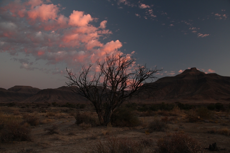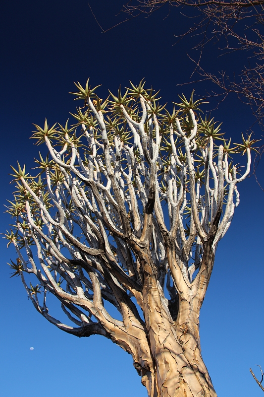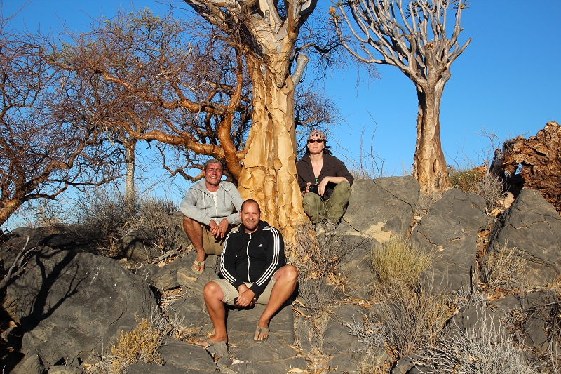 Nachdem wir uns „eingerichtet“ haben chillen wir den Rest des Tages. Gegen Abend treffen wir die derzeitige Pächterin des Platzes, Christine, eine Deutsche, die seit mittlerweile 17 Jahren in Namibia lebt. Sie fragt uns, ob wir an einer Tour zum Köcherbaumwald auf dem Farmgelände interessiert sind.