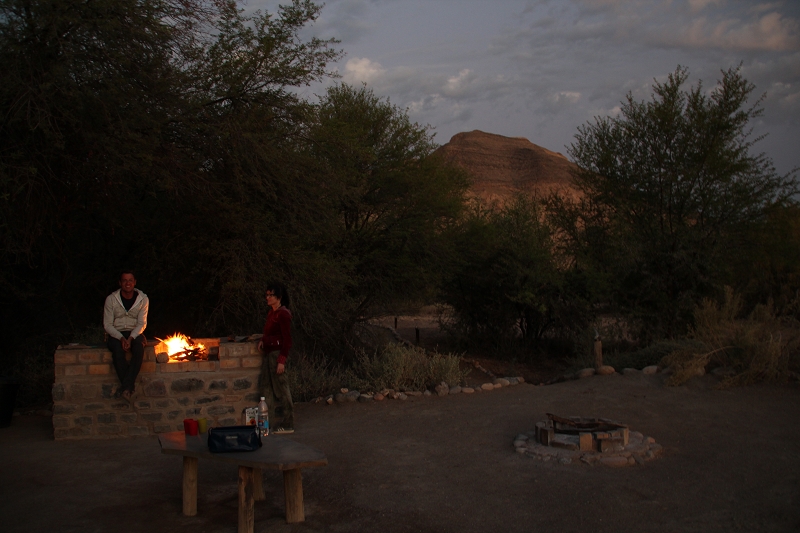 Bevor wir uns dieses Touristenprogramm reinziehen, wollen wir noch mal schön ruhig und entspannt campen. Wir versuchen unser Glück auf dem Hauchabfontein Campsite und sind von dem Stellplatz und der Gegend alle sehr begeistert und beschließen einstimmig, hier zu bleiben. Die Campsite ist wirklich liebevoll gemacht, abends werden alle Wege mit Kerzen beleuchtet, die Sanitäranlage ist sehr sauber und geschmackvoll gemacht.