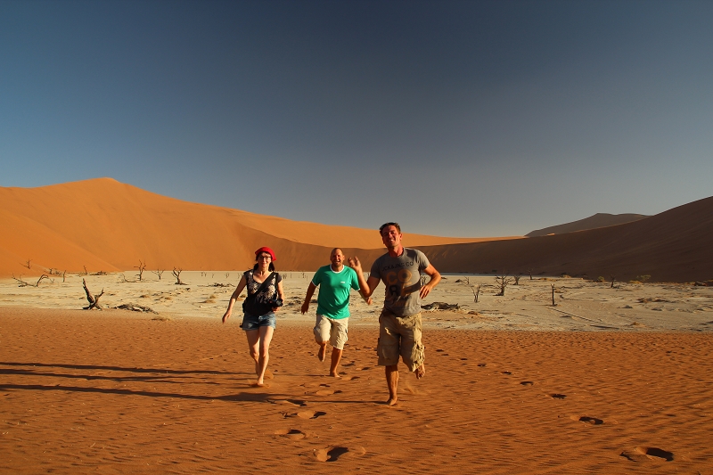 …zwei Bilder gefallen mir besonders, das mit Tom und Markus vor dem Muz (hat sicher Andrea gemacht) und das im Sossoussvlei, auf dem ihr Drei auf die Kamera zu rennt (Selbsauslöser?, gute Idee)…