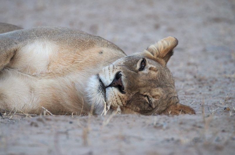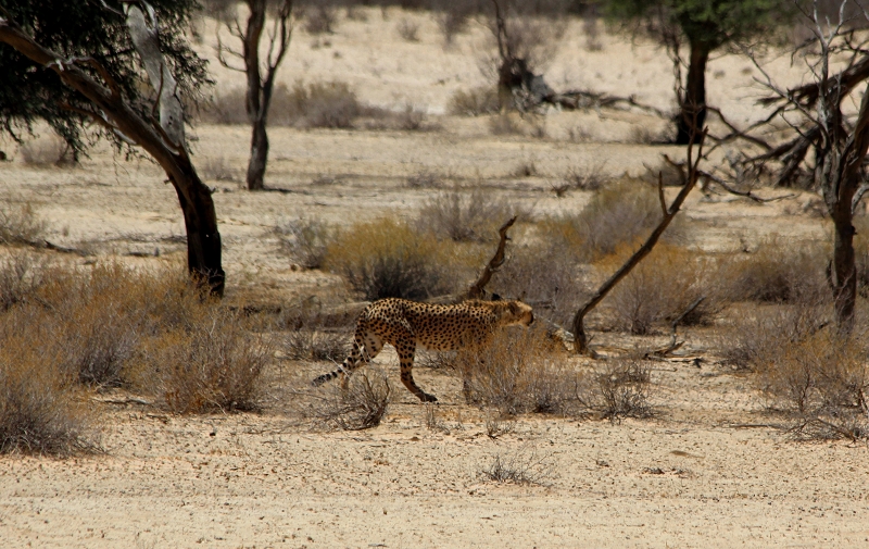 Wir stehen auf und machen uns gleich auf die Suche nach den Löwen. Weit können sie nicht sein, immer wieder sehen wir deutlich die Spuren der großen Tatzen im Sand.kIMG_3539Doch nach stundenlangem Herumfahren war die Suche leider ergebnislos und wir kehren wieder auf unsere Campsite zurück.