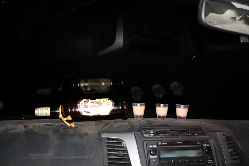 Natürlich muss der Grenzbeamte seinem Job nachgehen und belehrt uns nochmal, dass nur 2 Liter Alkohol pro Person erlaubt sind und somit meint Andrea, dass wir ja auch nur ein paar Bierchen dabei haben.Dabei öffnet sie freundlich die Tür und da steht schon mal die erste 3 Liter Box Rotwein.