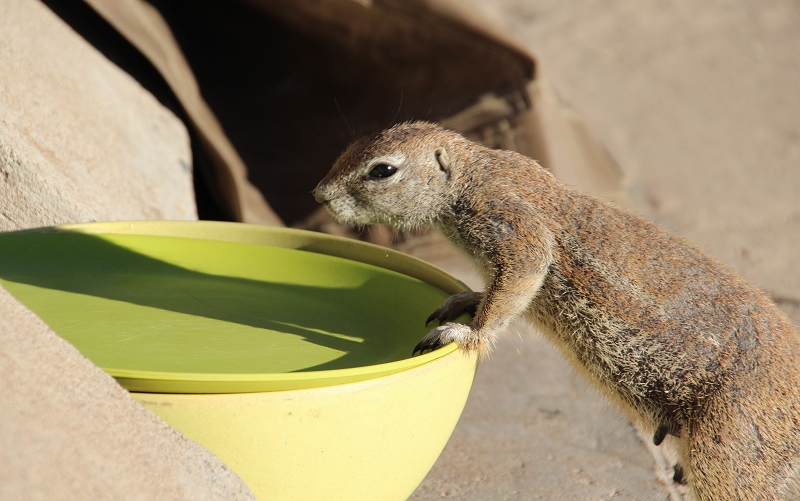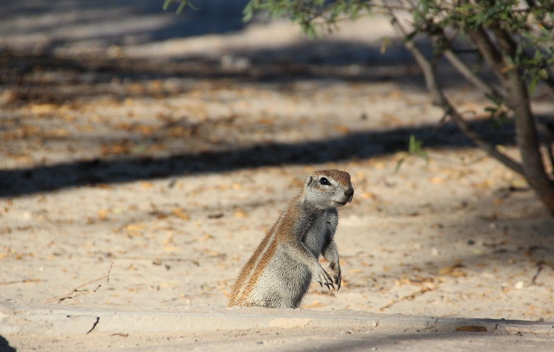 Den Rest des Tages genießen wir einfach den Blick von unserer Campsite auf die Bosobogolo Pan. Die Tierwelt zeigt sich leider auch in dem Teil des Parks bis jetzt noch sehr rar. Immerhin haben wir eine große Borstenhörnchenfamilie in unmittelbarer Nachbarschaft, die uns immer wieder gerne und neugierig besucht.
