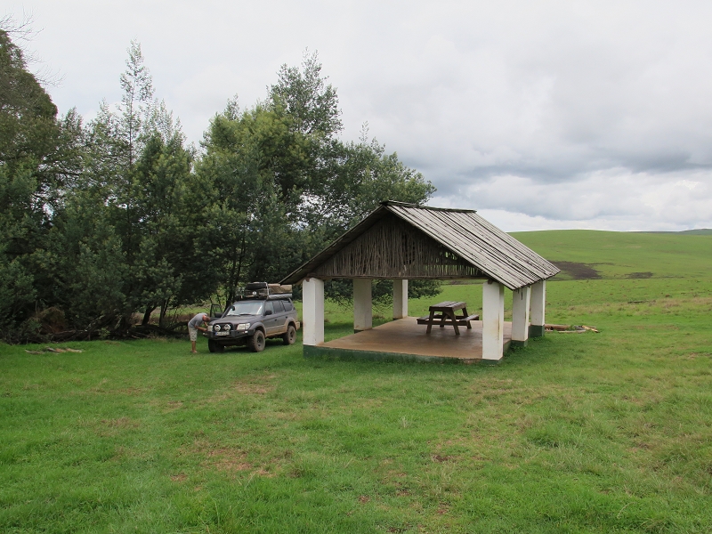 Auf dem Weg hinab vom Plateau erwischt uns der nächste ordentliche Schauer. Kurz vor uns sind auch Ramona und Manuel gefahren. Nur …. Ihr Landy hat keine Frontscheibe mehr. Wir treffen sie mitten im Regenschauer als sie gerade eine Plane über ihr Auto ziehen. Die beiden tun uns so dermaßen leid. Echt bewundernswert, wie sie die Situation trotzdem tapfer und gut gelaunt meistern.