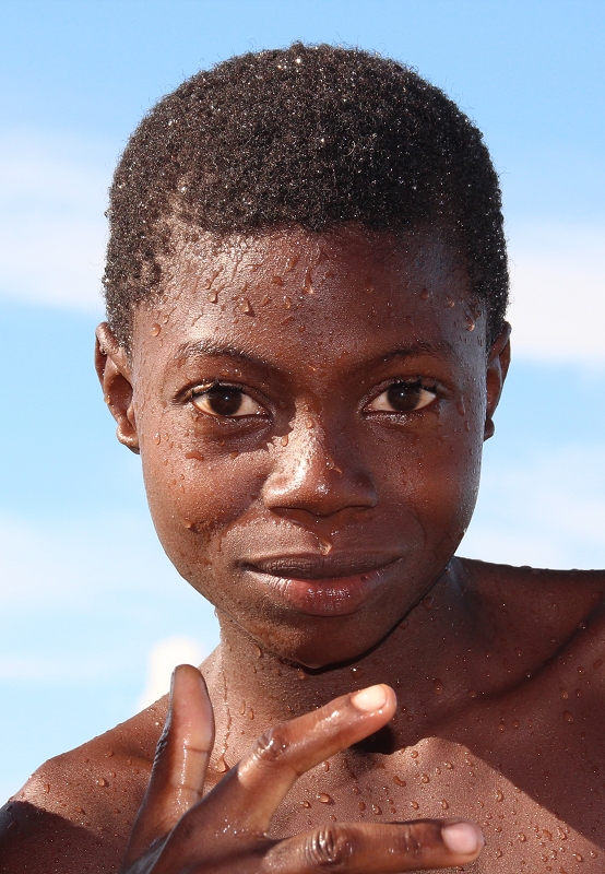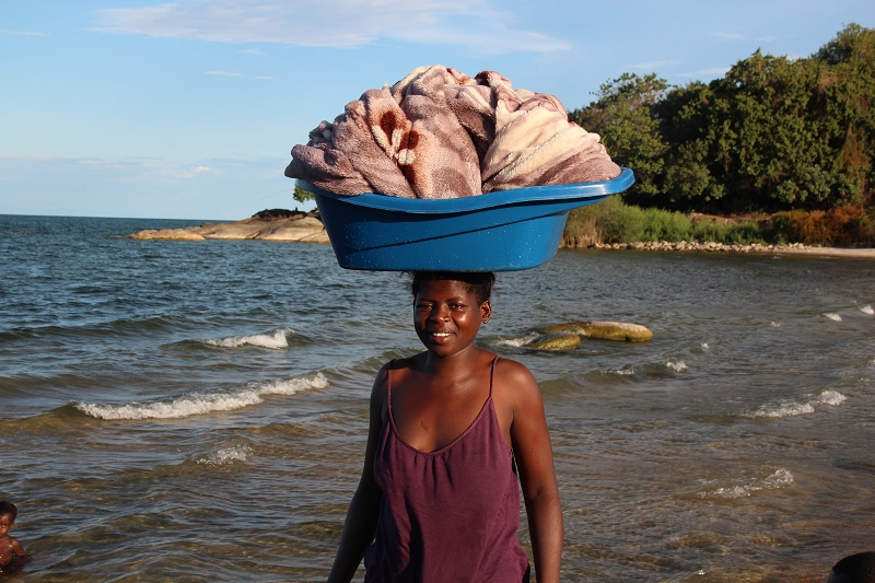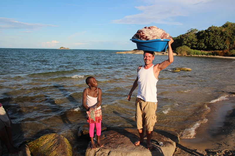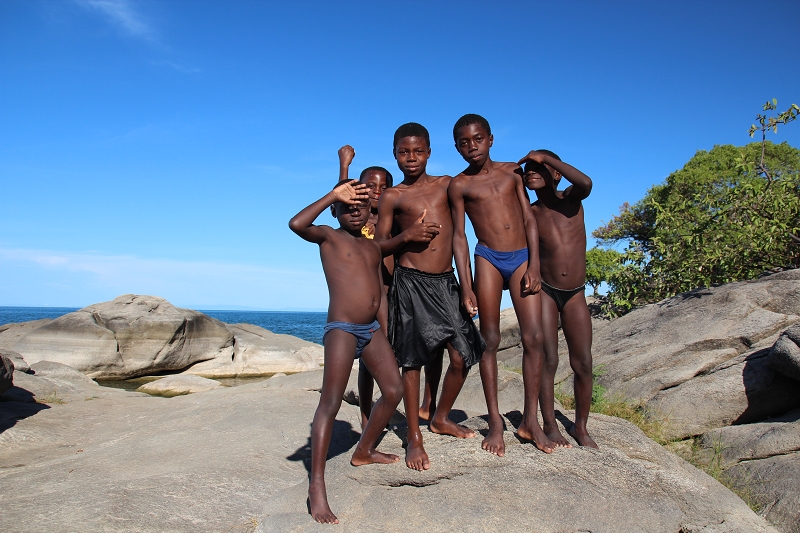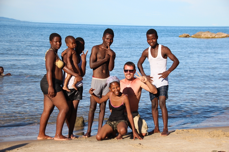 Den Nachmittag verbringen wir mit Plantschen im mindestens 30 Grad warmen Malawisee. Am Nachbarstrand haben die einheimischen Kinder mit uns und wir mit ihnen jede Menge Spaß. Alle möchten unbedingt und immer wieder fotografiert werden.