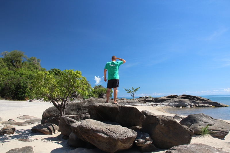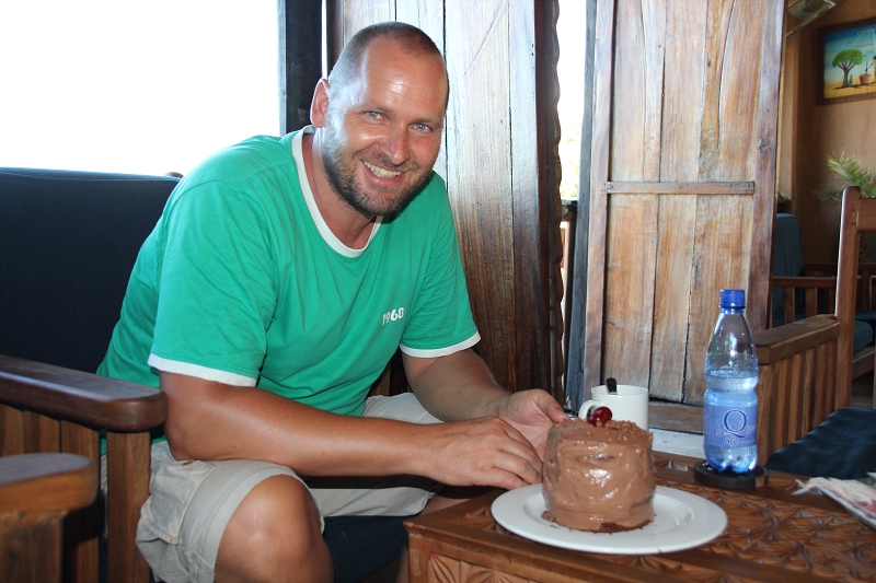 Heute ist Tom´s Geburtstag. Die Sonne scheint und es ist sehr heiß. Wir starten den Tag mit einem ausgiebigen und leckeren Frühstück mit tollem Blick über den See bis nach Mosambique.