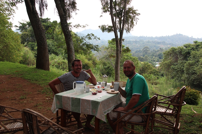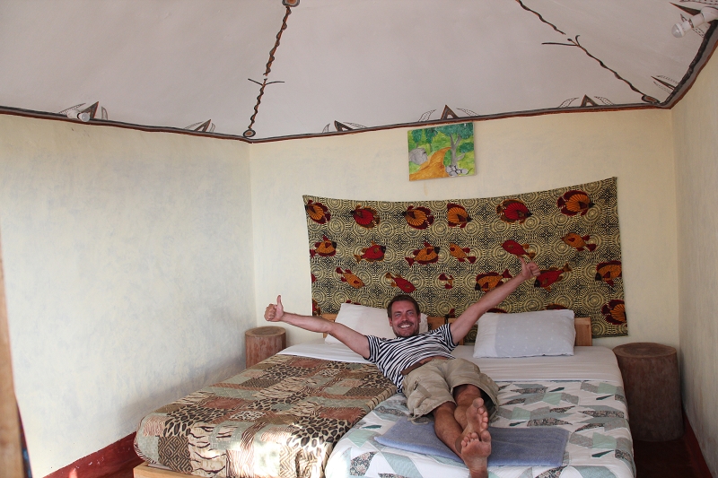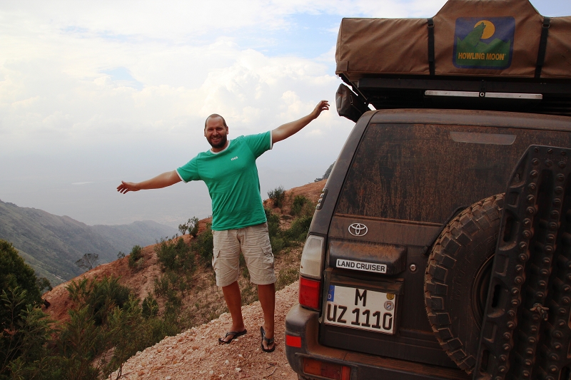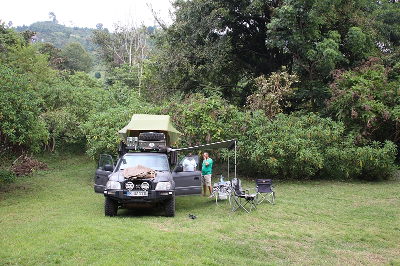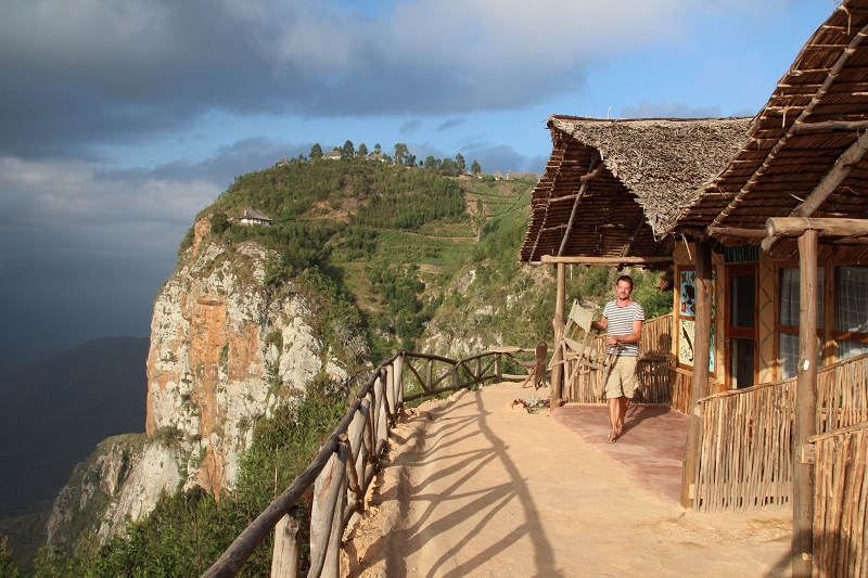 Die kleinen, zweckmäßigen Chalets sind fast an der Abbruchkante gebaut. Super schön, man fühlt sich fast wie in einem Vogelnest. Abends fängt es aber wieder mal ordentlich zu schütten an (Hallo Regenmacher) und es wird ganz schön frisch. Schade nur, dass es mit der heißen Dusche einfach nicht klappen will. Der holzgefeuerte Boiler brennt zwar schon ewig und ordentlich, aber das warme Wasser will einfach nicht unsere Dusche erreichen, von Wasserdruck ganz zu schweigen. Das Ganze ist eigentlich nur erwähnenswert, weil die „Problemlösung“ oder zumindest der Versuch der Lösung wieder mal typisch afrikanisch lief, nämlich so gut wie gar nicht oder erst nach mehrmaligem Nachfragen. Wir sagen mittlerweile nur noch „TIA“ (This Is Africa). Geduscht wurde dann halt nicht mehr. Aber schön war es natürlich trotzdem.