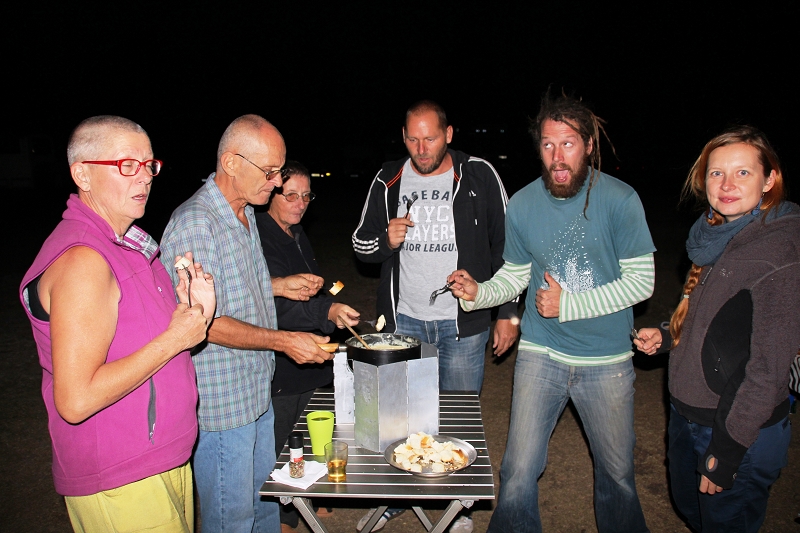 Unser Frust verfliegt auf der Campsite jedoch wieder schnell, denn Turi und Stina laden uns und die Anderen zu einem sensationellen Schweizer Käsefondue ein. Und das in Afrika. Genial. Herzlichen Dank dafür.