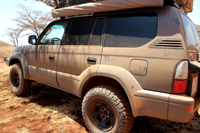 Kenia_ÄthiopienIMG_0426 Kenia_ÄthiopienIMG_0427 Kenia_ÄthiopienIMG_0446 Kenia_ÄthiopienIMG_0441Nach einer sehr frischen Nacht im Dachzelt (Morgentemperatur ca. 8 Grad) fahren wir heute in den nördlichsten Teil Kenias, ins Samburuland. Es wird immer trockene, heißer und ordentlich staubig. MUZ verfärbt sich langsam von Anthrazit in Rot.