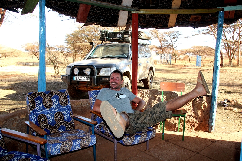 Kenia_ÄthiopienFebruar (43) Kenia_ÄthiopienFebruar (22) Kenia_ÄthiopienFebruar (20) Kenia_ÄthiopienFebruar (47)Kenia_ÄthiopienIMG_0401 Kenia_ÄthiopienIMG_0398Die Campsite ist gut geeignet, um einige Dinge zu erledigen. Während wir auf die Rücksendung unserer Pässe mit dem Visum für Äthiopien warten, lassen wir MUZ für den Endspurt noch einmal auf Vordermann bringen. Eine neue Versorgerbatterie wird eingebaut, die Gummis der Stabilisatoren waren mehr als fällig und unser Ersatzreifen mit der undichten Felge wurde nochmal mit einem Schlauch gefüllt und neu geschweißt.
